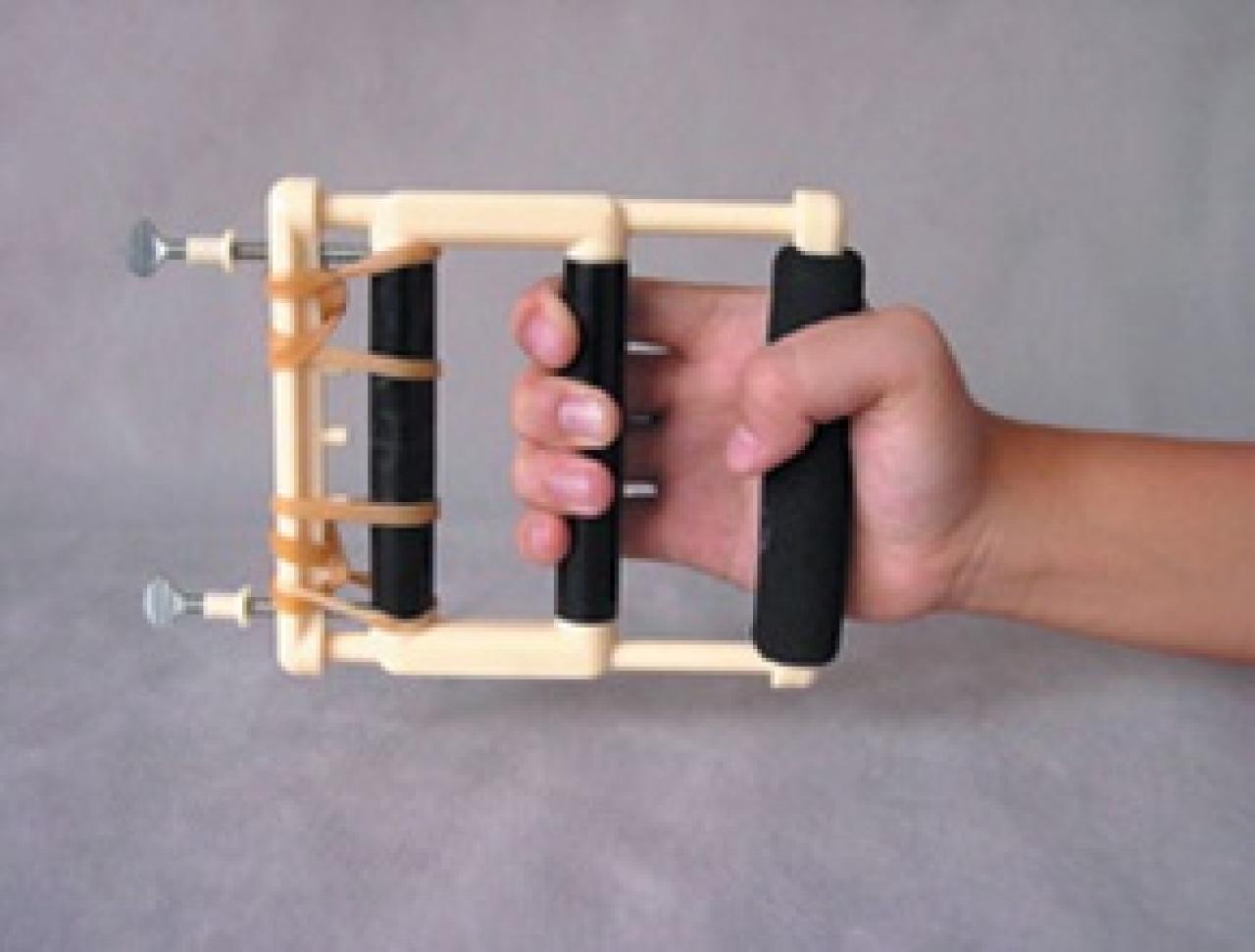 Existem muitos materiais usados para estimulação do ganho de força como faixas elásticas, tensores manuais, pesos em halteres ou pulseiras. Importante lembrar que o treino deve ter o aumento de resistência progressivamente e sem pressa. É útil também passar sequências de exercícios a serem feitos pelo paciente em casa e assim possibilitar mais oportunidades para o ganho de força.