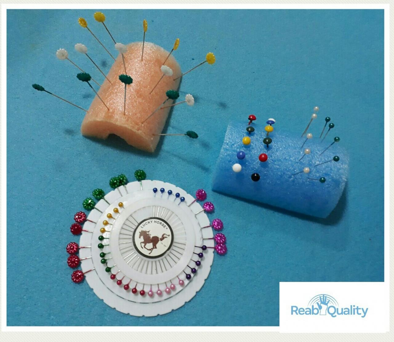 ALFINETES, CRIATIVIDADE E TERAPIA – Alfinete é terapêutico, quem diria! Um dos requisitos para ser um bom terapeuta ocupacional ou Terapeuta de Mão é a capacidade de escolher atividades adequadas aos objetivos para evolução dos pacientes. Mas outro requisito fundamental para isso é a criatividade nas escolhas das atividades. E o horizonte de objetos alternativos é tão grande que a criatividade borbulha! Aqui o alfinete se mostra útil para estimular coordenação motora fina, encaixes, noção de cores, quantidade, orientação espacial, atenção e concentração. Além de ser barato e acessível, o que possibilita o paciente replicar esses exercícios em casa.